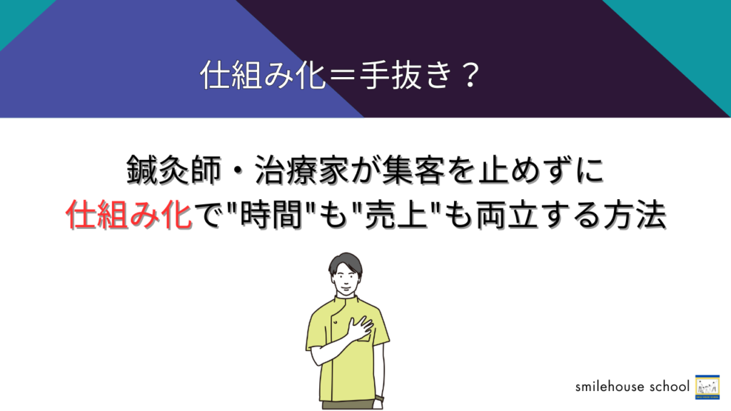 鍼灸院・サロン経営者向け|「仕組み化=手抜き」と思っていませんか?動かなくても集客が止まらない仕組みの作り方と、実際に売上とリピートが安定した成功事例を紹介します。 -
